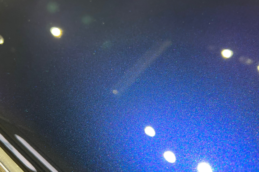 研磨が終了しましたら仕上げにグロスアーマーを施工します。今回施工した『グロスアーマー』は、非常に透明度が高く濡れたような美しいツヤが特徴の3層の完全硬化型ガラスコーティングです。研磨でキズを除去してから施工することで、滑らかになった塗装面がより艶やかに美しく仕上がります。