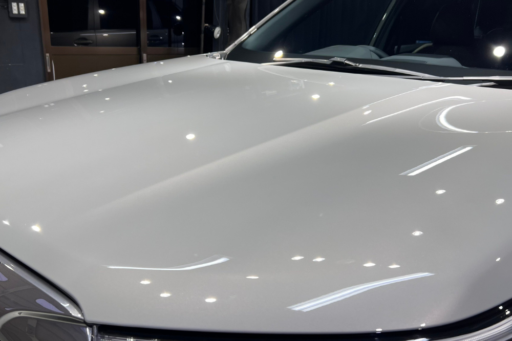 研磨が終了しましたら、グロスアーマーを施工いたします。グロスアーマーは非常に透明度が高く美しい3層のガラスコーティングになります。メンテナンスで強い洗剤を使用しても剥がれ落ちることはございません。汚れが落としやすくなることでお手入れが簡単になります。